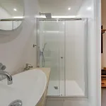 Beautiful, Designer 2Br Home In Heart Of Valletta By 360 Estates apartment is furnished with a sofa set featuring an air conditioner, as well as modern facilities like a television. A separate toilet and a shower are available in the bathroom. Additionally, you'll find dryers, free toiletries, and towels.